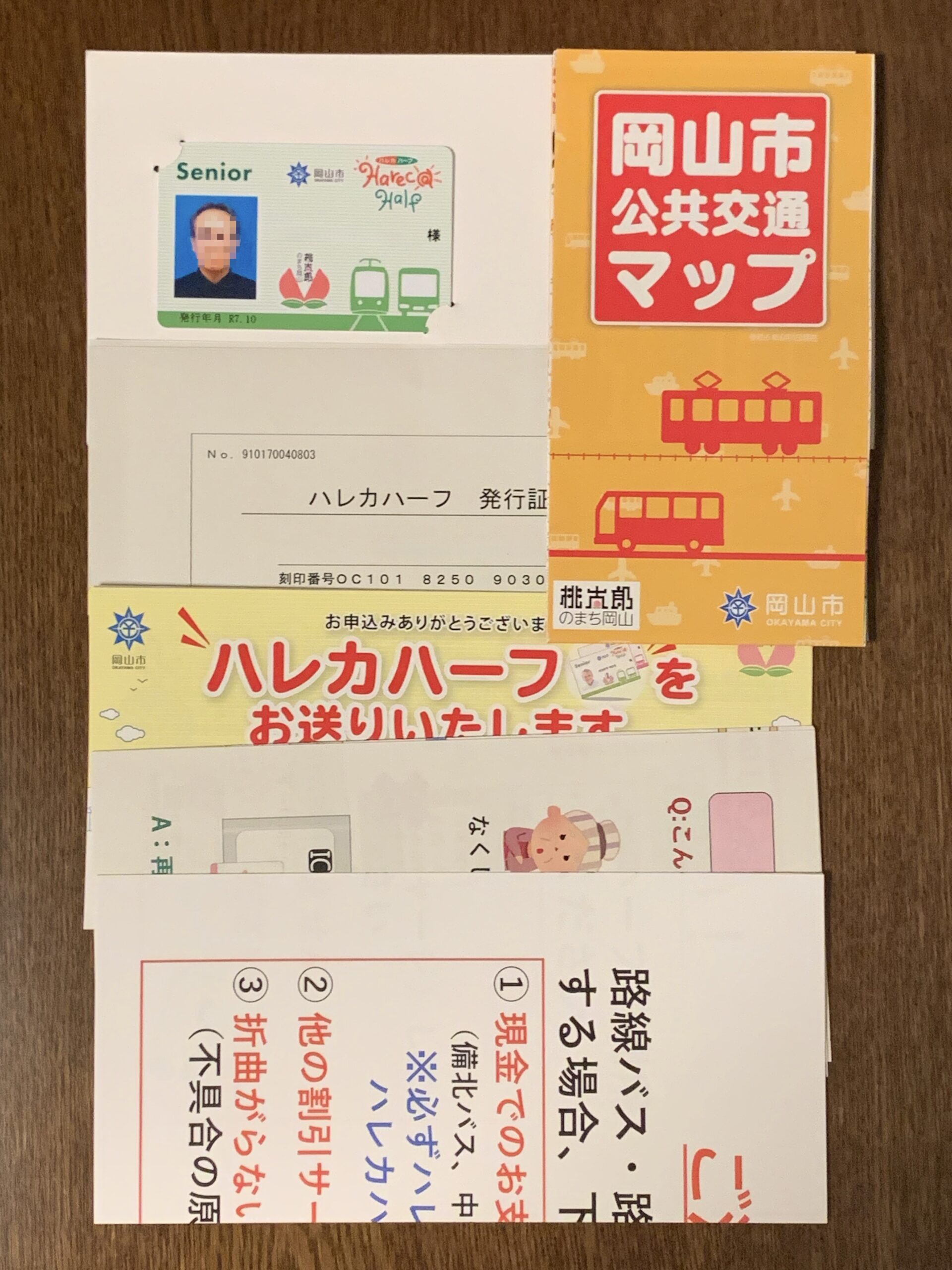 中にはカードの他に説明書や市内の公共交通マップ、発行証明書などが同封されていました。